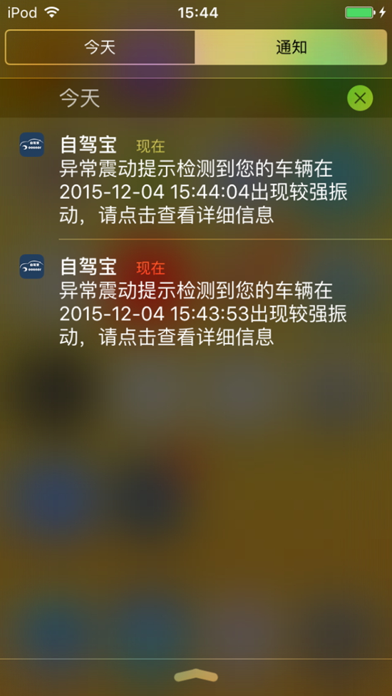 当爱车在停车处遭遇外力时,车子发生异常震动,自驾宝S1根据震动程度分级别实时远程告警通知车主,车主可以通过手机APP查看实时通知的异常振动告警事件的时间、地点、视频、图片信息,第一时间了解爱车的异常情况。