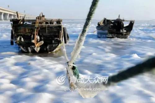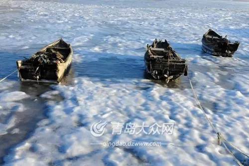 青岛胶州湾海冰绵延数公里渔船被速冻↓↓↓