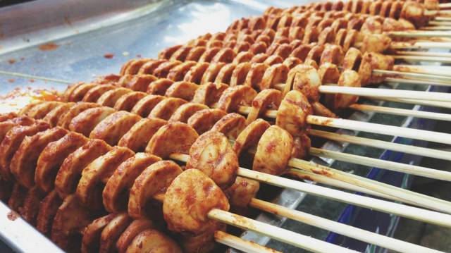 这应该大家都吃过,至今学校门口最火的小吃,肉,蔬菜,都各来几串,好吃啊!