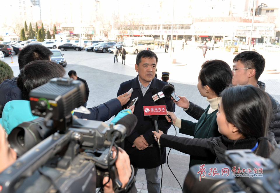 代表接受记者采访。青岛日报/青报网记者周光辉 摄