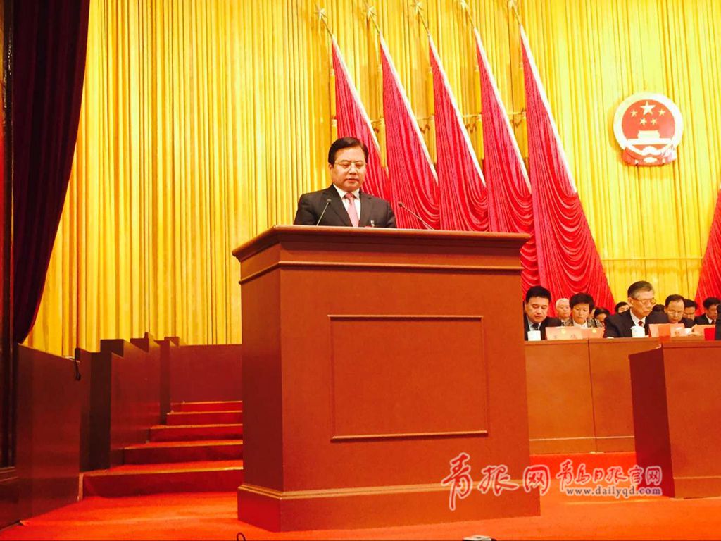 张新起市长作市政府工作报告(青岛日报/青报网记者 刘栋摄)