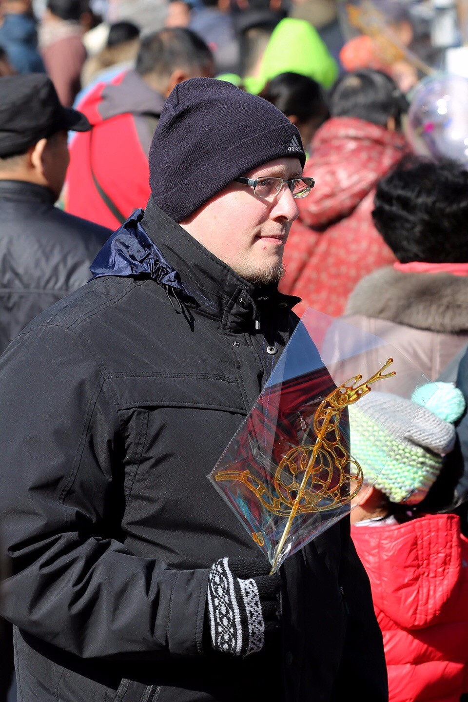 ▼矮马~老外也来赶热闹!我们的糖画可还好吃?