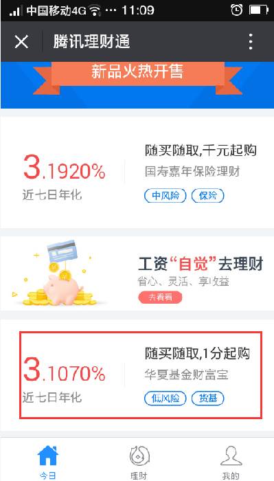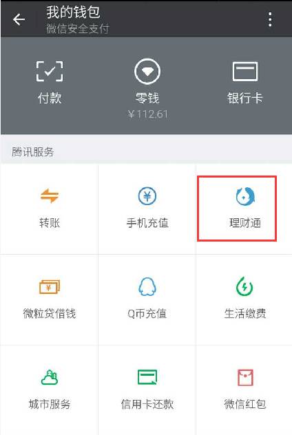 4、第一次操作完成后,以后提现就方便了,点击理财通进入,