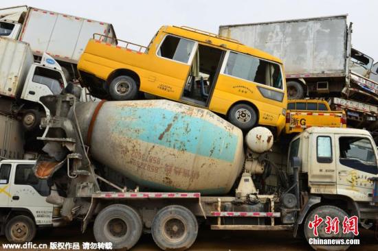 资料图:2015年4月8日,浙江义乌市治理淘汰黄标车回收仓库,6000多辆淘汰回收的各类黄标车等待拆解。吕斌 摄 图片来源:东方IC 版权作品 请勿转载