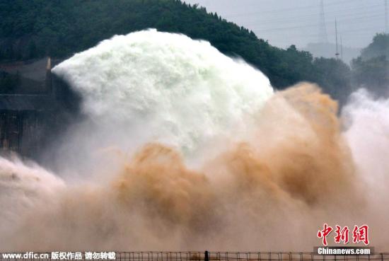 资料图:2015年6月29日,游客在黄河小浪底水利枢纽工程出水口观看泄水的壮观场景。当日,2015年黄河小浪底调水调沙开始。图为游客在黄河小浪底水利枢纽工程观看飞瀑景观。图片来源:东方IC 版权作品 请勿转载