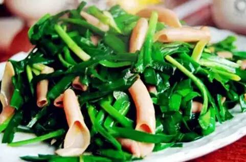 韭菜和海肠几乎算是标配了。用剪刀将海肠两头带刺的部分剪掉,把内脏和血液洗净,迅速下锅翻炒。如果动作慢了,海肠就会变得僵硬难以咀嚼,这绝对是技术活。海肠必须要选活的、蠕动得比较频繁的。