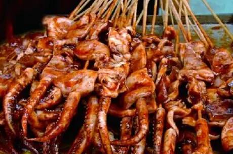 要说街头美味,怎能少了铁板鱿鱼!美味的大鱿鱼在铁板上滋滋冒着香气,刷一下酱,撒一层辣椒孜然,趁热吃,那滋味儿,美得不要不要的。最重要的是,它随处可见,简单易得,随走随吃,要的就是这么一个接地气儿的洒脱自在!