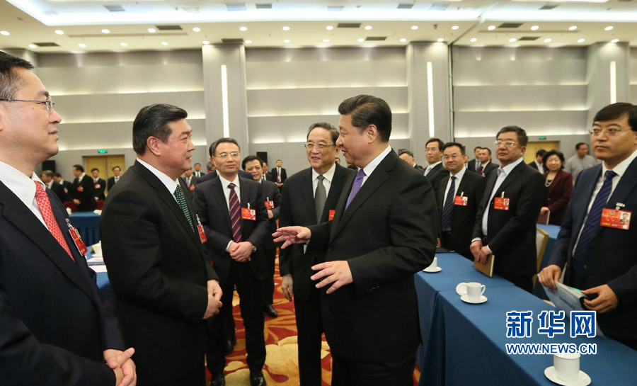 3月4日下午,中共中央总书记、国家主席、中央军委主席习近平看望参加全国政协十二届四次会议的民建、工商联委员,并参加联组会,听取委员们意见和建议。中共中央政治局常委、全国政协主席俞正声参加看望和讨论。新华社记者兰红光摄 >>>点击查看详细