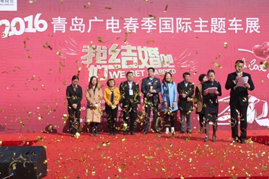 3月24日9:00,“2016青岛广电春季国际主题车展”在青岛华秀168中心广场舞台正式开幕,主办方青岛广电影视传媒集团有限公司董事、副总经理徐朝晖,青岛纺联控股集团有限公司董事长闫勇等领导到场致辞。