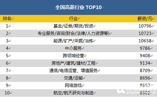 2016年全国高薪行业TOP10,基金证券夺榜首