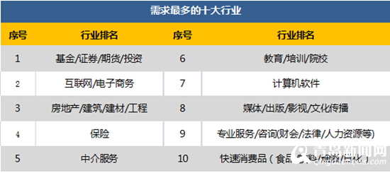 数据显示,企业发布的简历数量排名中,基金/证券/期货/投资、互联网/电子商务、房地产/建筑/建材/工程行业成为本周发布简历数量的前三甲。值得一提的是,金融行业已经成为经济增长的强力“引擎”,可谓是"钱"景广阔,加上国家也对金融领域将会有更深层次地投入。因此,对于人才的需求将与日俱增。由此可见,基金/证券/期货/投资行业不仅是求职者梦寐以求的职场舞台,也是企业花大价钱招兵买马的行业。