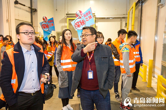百胜餐饮集团青岛物流中心是承接产品供应商至餐厅的物流服务团队,持续稳定、高效的物流服务是食品安全的重要步骤。探访团成员一进入物流仓库,纷纷惊叹:这里真是太大了!工作人员介绍说,青岛仓为干冻一体库,有三个存储温度库,分别为干仓、冻仓、冷藏库,共占地6300多平米,整齐划一的棧板将所有原料进行分类存储,避免交叉污染。“原来,我喜欢吃的薯条、汉堡、可乐等所用的原料,包括吸管、餐巾纸都是出自这儿啊,像个魔法城堡一样,好神奇!”陈奕霖小朋友感叹道。