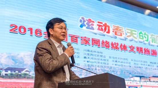 驻马店市政协副主席谢凤鸣致欢迎辞,他说,“炫动春天的郁金香——2016全国百家网络媒体文明旅游河南行·走近驻马店”大型采风活动,既是专家把脉驻马店旅游的平台;又是借力百家网络媒体以及嘉宾们的人脉资源,搭建驻马店旅游产业更好更快发展的桥梁和纽带;更是驻马店提高知名度、美誉度,扩大影响力,助推驻马店旅游产业快速发展的强力引擎。