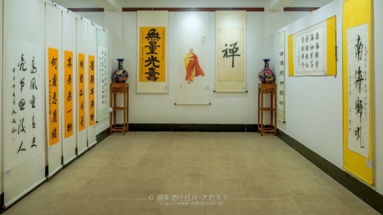 用过斋饭,大家参观了南海禅寺书画研究院陈列的名人名家书画作品。随后在南海禅寺方丈界乘法师的带领下来到大雄宝殿,界乘方丈亲自诵经为信众、记者们祈福。百家网媒及摄影师满怀虔诚之心,依次燃香敬佛,最后在天王殿三心桥,合影留念。