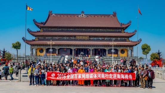 2016全国百家网媒河南行的采编记者在南海禅寺大雄宝殿前合影留念(摄影:任红兵)