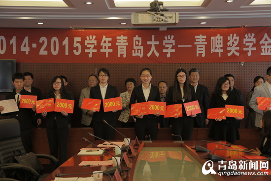 3月30日当天,在青岛大学举行的“青岛啤酒—青岛大学”2015年奖学金颁发仪式上,还有另外49名全日制本学科在校生、30名全日制硕士研究生分别获得“青啤育才奖学金”和“青啤英才奖学金”。当天,青岛市教育发展基金会理事长程友新,青岛啤酒股份有限公司副总裁姜宏,青岛大学党委常委、副校长汪黎明等参加了奖学金的发放仪式。