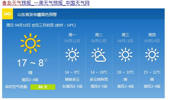 青岛10日晴8℃-17℃ 未来3天最高18℃周二阵雨