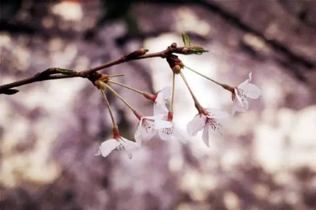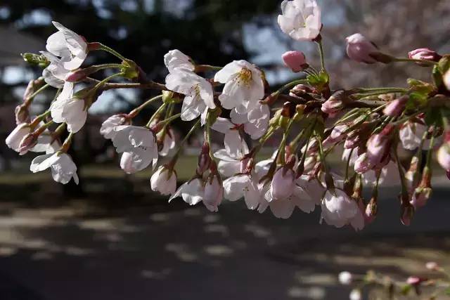 ▲樱花则是先开出小软花托,然后再开花,另外,花瓣的尖端还会有花缺。