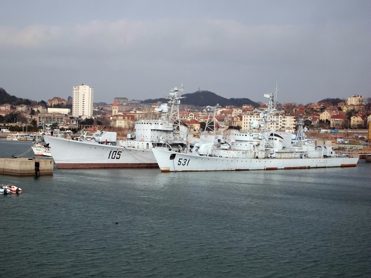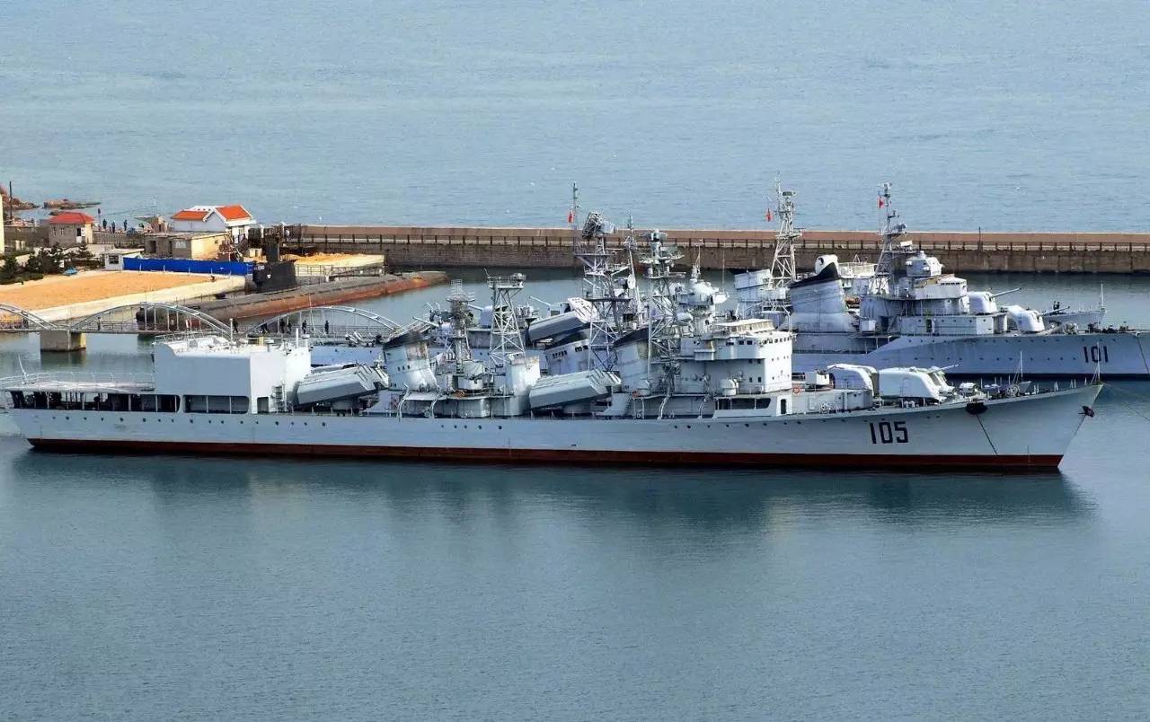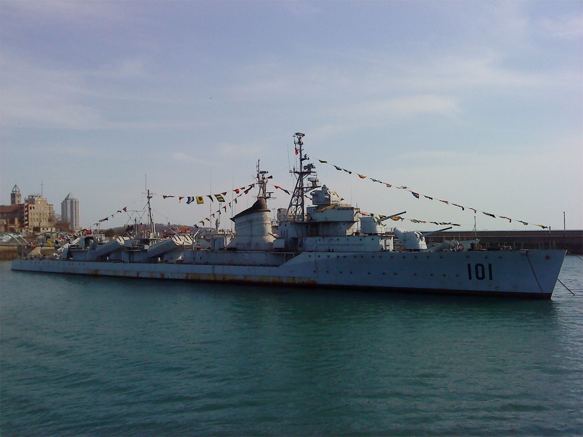 停泊在1号码头右侧的是人民海军的第一艘驱逐舰“鞍山”舰。它原为苏联太平洋舰队的一艘以鱼雷为主要武器的“高尔基”级驱逐舰,亦称为“雷击舰”。在第二次世界大战中曾击落德国飞机,受到苏军统帅部嘉奖。1954年10月,作为我国向苏联购买的第一艘驱逐舰,驶抵青岛。定型为07型,舷号101,70年代初,拆除鱼雷发射装置,改装为舰舰导弹驱逐舰。
