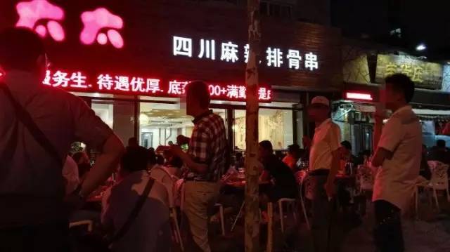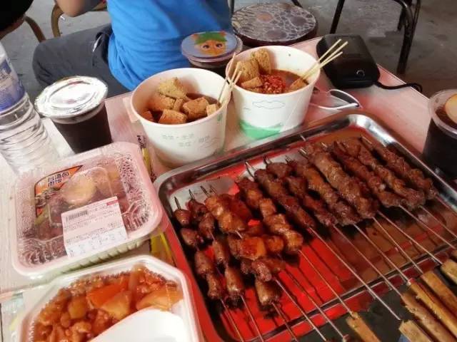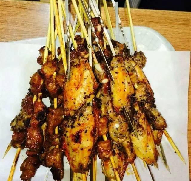 在西镇臭豆腐隔壁,也是在汶上路上,挨着马路口小小的门头。基本是半户外的状态,只有烤肉的设备是在屋里的,点了烤串在人行道上站着等,如果运气好人不多还好些,如果人又多要等好久。