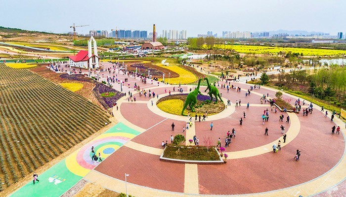 西海岸生态观光园以油菜花、玫瑰花等持续性的花海景观为特色,以卡通梦幻为主题,突出周末休闲、观光。