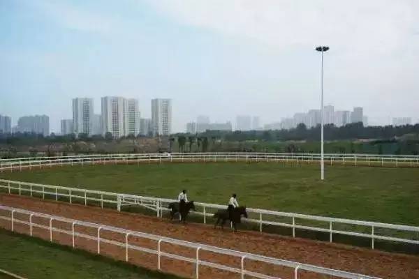 马术俱乐部占地面积300亩,拥有一座14匹马位的生态马厩,400米长椭圆型标准赛道,500名坐席的看台,600平米的训练场。