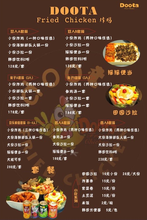 还有韩国本土饮料、啤酒供应。为方便客人,DOOTA还定制了几款双人亲子、多人套餐,爱吃韩国美食的亲一定有你想要的味道。