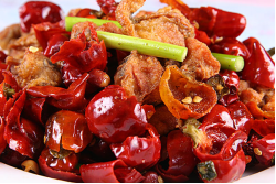 食街的名菜很多,其中一道“歌乐山辣子鸡”,用料特别讲究,主料一定选用土仔公鸡,肉质鲜嫩肥美,辅料选用了川产上等辣椒和大红袍花椒,烹制后,香气四溢,诱人食欲,麻辣适口,入口酥脆。在满盘红亮的辣椒中轻挑慢选寻找鸡丁,回味悠长而使食客津津乐道。