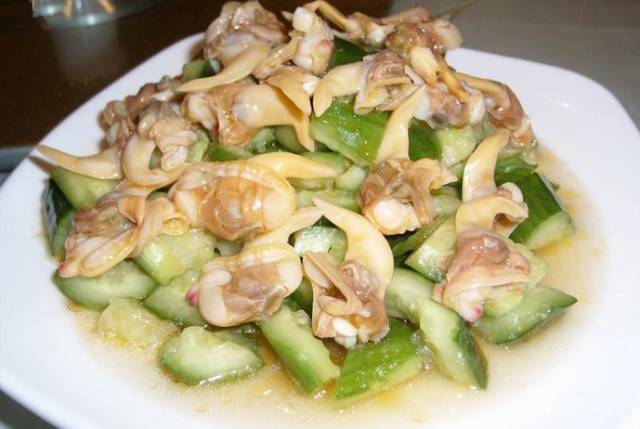 毛蚶子肉跟菠菜或者黄瓜凉拌都可以