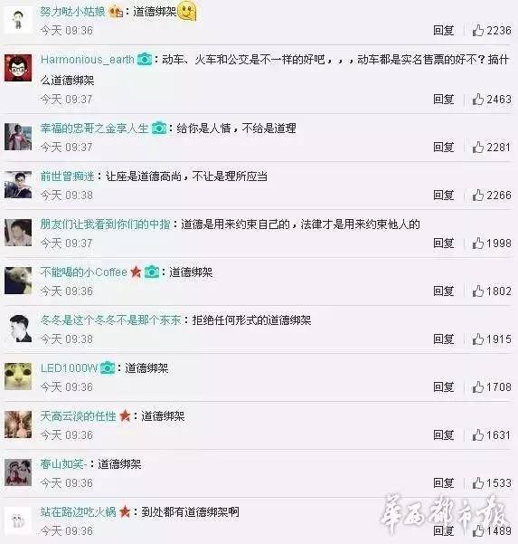 于是,不少网友给评论“道德绑架”的网友挨着点了个ZAN。