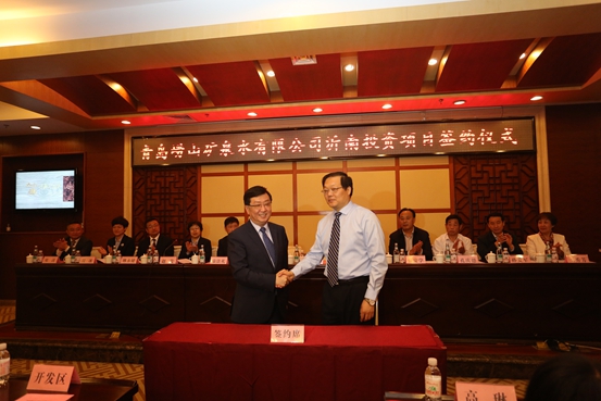2016年5月10日上午,青岛崂山矿泉水有限公司与沂南县政府签署项目投资协议,标志着双方合作发展的不断深入。此次沂南合作投资项目是崂山矿泉水继与西藏5100产业援藏和贵州安顺龙宫对口帮扶之后的第三个合作项目,是目前百年崂山矿泉水第一次在省内进行实质性投资的大项目。