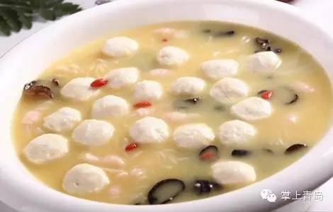 锅内倒提前熬好的鱼汤,将做好的丸子在凉汤时下入锅中,在水温90摄氏度左右的汤中汆熟,再加些焯水的油菜心点缀即可。
