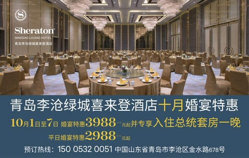 婚礼特惠 10月黄金周预订青岛李沧绿城喜来登酒店婚宴 专享总统套房入住一晚