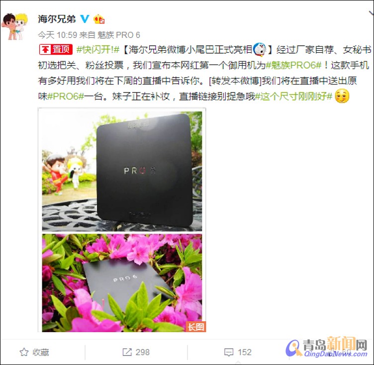 “微博小尾巴”合作的手机品牌,是结合微博、微信投票以及对网友的私信进行综合来敲定的。魅族Pro 6折桂后,海尔兄弟官方微博将在三个月内持续使用Pro 6手机进行至少每天一次的微博发布,同时还会拍摄和发布海尔兄弟与手机的写真合集。此外,魅族还将提供10台手机,其中8台送给海尔兄弟官微粉丝。这一系列的举措,不仅仅是深化了魅族手机品牌、海尔兄弟微博与粉丝之间的交互,更调动了海尔兄弟官微粉丝的活跃度,增强了用户黏性,为未来进行下一轮的网络营销提供了坚实的基础。