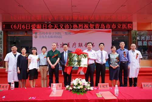 2016年6月5日,青岛市市立医院(集团)与青岛鲁东眼科医院“医疗联合体”揭牌仪式在青岛鲁东眼科医院隆重举行,青岛市市立医院(集团)副院长王冠军,青岛鲁东眼科医院院长陶军、青岛市市立医院(集团)基层医疗管理科主任袁文清、青岛鲁东眼科医院特约专家王又、马海华等相关领导出席本次揭牌仪式。三级甲等医院优质医疗资源服务莱西市民。
