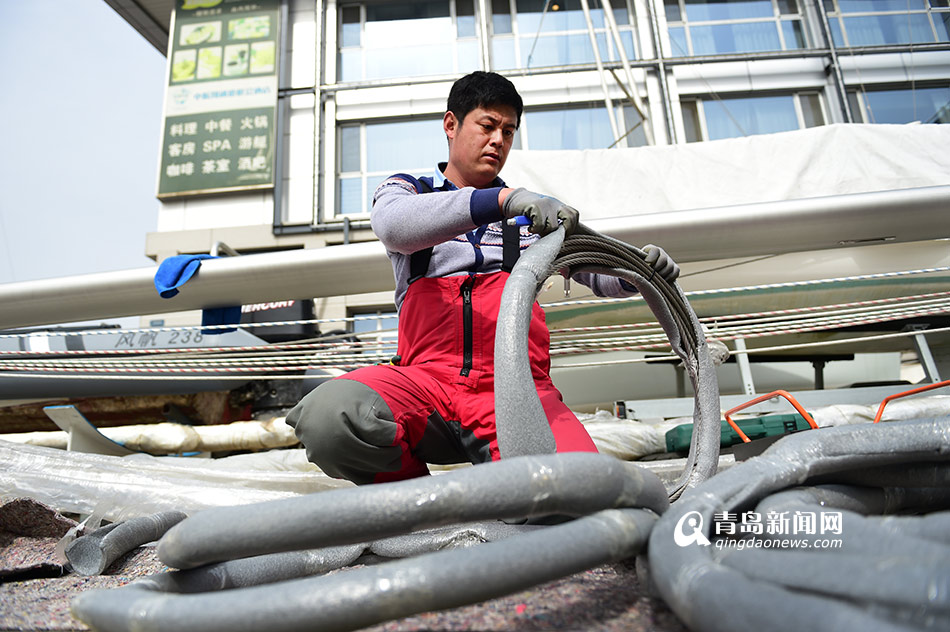 “你看这条船,光桅杆就25米!”在奥帆中心,青岛新闻网见到了正在组装帆船的江峰,他说,这艘船是刚刚从国外运回来的,属于双动力帆船,船身采用玻璃钢材质,属于中高端的帆船,价格在420万左右。