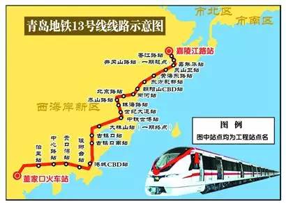 青岛地铁13号线位于西海岸新区,总体呈东北—西南走向。线路起于青岛经济技术开发区的嘉陵江路站,终于董家口火车站,正线全长约70km,设车站23座(地下站9座,高架站14座),平均站间距3.16公里,通过与地铁1号线、6号线等多条线路换乘,实现与轨道交通线网的有机结合。