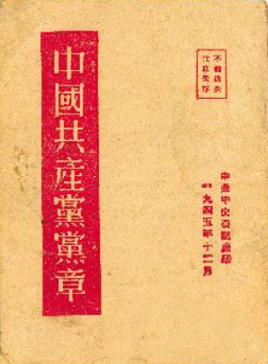 1945年6月11日中国共产党第七次全国代表大会通过的《中国共产党章程》,1945年12月由中共中央书记处印。