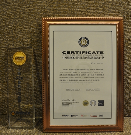 世界品牌实验室是世界领先的品牌顾问机构,由美国哥伦比亚大学教授、1999年诺贝尔经济学奖得主罗伯特•蒙代尔博士担任主席,奉行“独立公正”的原则,其BVA评估模型得到世界管理学界的一致推崇。其公布的“中国500最具价值品牌”被誉为“中国品牌奥斯卡”。获得这一荣誉成为衡量企业在业界实力和品牌认知度的有力依据。