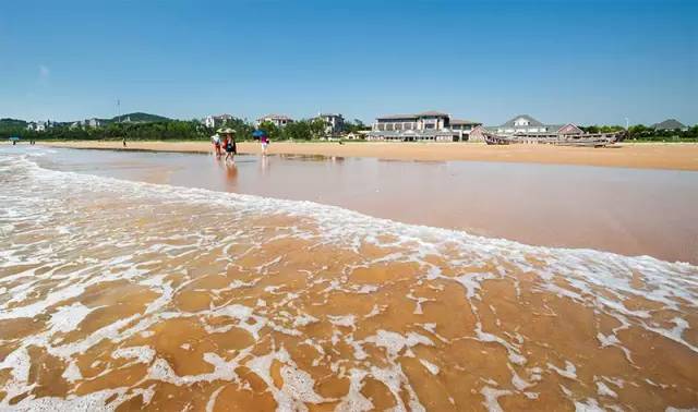 因沙质细腻均匀,太阳下银光四射,宛若镶嵌在蓝色丝绸上的银盘,故名银沙滩。银沙滩南濒黄海,背靠黑松林,阳光、大海、沙滩、松林,动静结合,交相辉映,乃绝佳的休闲度假天堂。