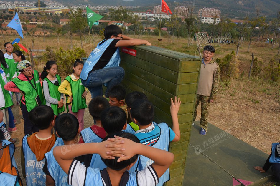 在逃生墙,我们学会了团结的重要性。于锴和吴佳润在墙下搭人梯,其他同学通过他们的帮助翻过墙去。到我的时候,我就开始躁虑不安,“我不会太重吗?真的要踩上去吗?”“你重有王家毅重吗?”于锴和吴佳润同时回答。“也是。”我想了想,就踩在他们身上翻过去了。我爬到上面才知道翻墙的困难,教练说不能让我们跳下去,所以我只能轻轻地,慢慢地往下落。已经翻过去的同学都在呼喊:“快一点!”“我们在下面接着你呐!”……我顺利下去了,这可都是同学们的功劳!可是最后于锴为了全班的“安危”,最后没有成功逃生,大家都很着急,有些同学甚至哭了出来。在这里,也要谢谢于锴!