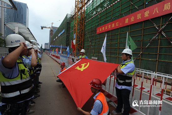 青岛新闻网6月29日讯 “我志愿加入中国共产党,拥护党的纲领,遵守党的章程……”昨日,中建八局青岛公司青岛环球金融中心项目的党员们在工地重温起了入党誓词。当日,崂山区城建局 “红色驿家”创建活动启动,崂山区9个工地项目第一批成立建设工地党支部,建起流动党员的家。