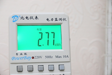 眼下正值酷夏,是否节能省电是考验一款变频空调性能强弱的关键指标之一,这也是影响消费者购买的重要因素。测评中,当天室外温度高达37℃,室内温度为31.5℃,此时开启“小炫风”空调,设定26℃制冷,自动运行模式下让其运行8小时即空调开启480分钟,最终测得这款空调8小时的耗电量为2.77kwh。