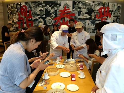 鼎泰丰举办包小笼包的活动教食客们如何包包子
