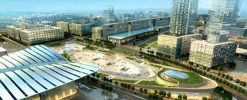 在青岛北站的交通商务区核心区