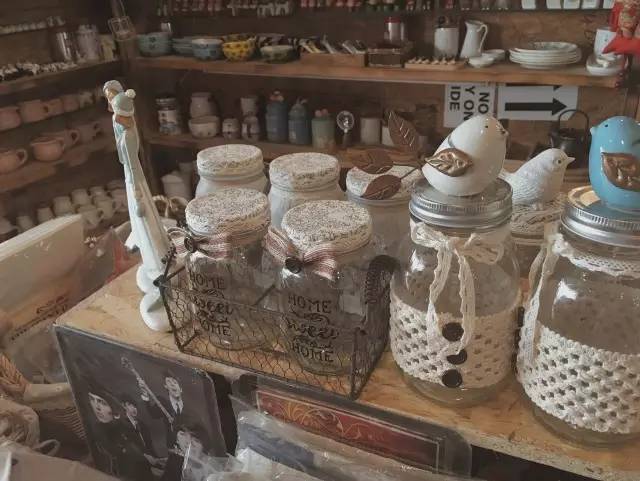 还有一些小摆设,室内是那种原木乡村的风格,还有设计感很强的杂货出售。