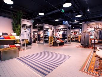 青岛首家Hollister门店采用全新设计,标志性的液晶电视屏和落地玻璃橱窗设计为顾客一展当季新品。