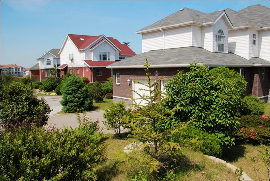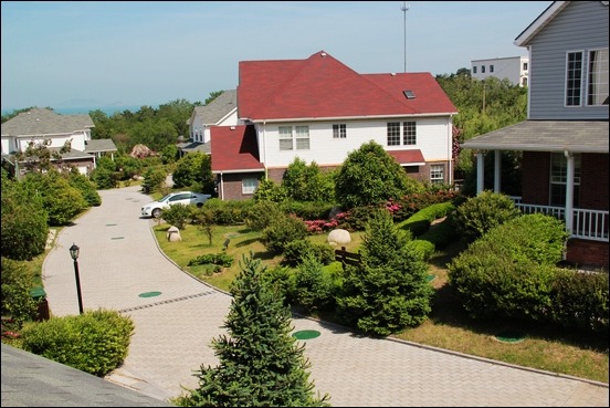 走在石头山庄的小径石阶,仿佛来到美国阿拉斯加小镇,浓厚的北美风情让人紧绷的神经瞬间放松。错落有致的别墅群立于山海之间,简洁自然,精致优雅,充满灵气。尤其在万物盛放的春夏季节,园区里各种植被郁郁葱葱,百样鲜花竞相绽放,可谓姹紫嫣红,美不胜收。