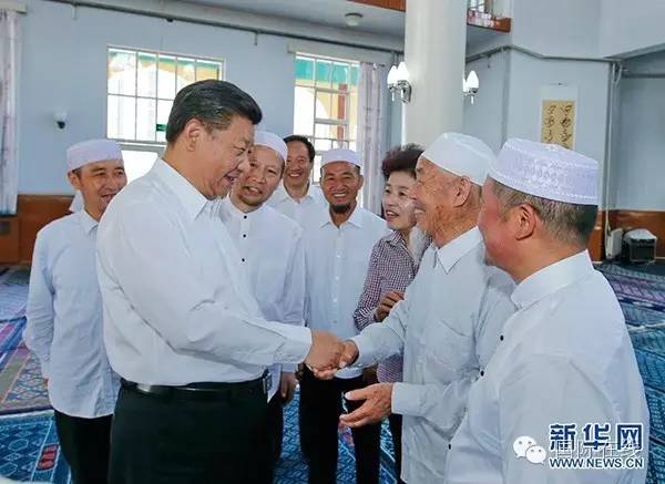 19日上午,习近平来到银川市金凤区新城清真寺。他在中国伊斯兰教协会副会长、宁夏伊斯兰教协会会长杨发明和该寺开学阿訇马生明陪同下进入寺院,了解清真寺日常管理和宗教活动开展情况,同自治区伊斯兰教界代表人士热情握手、亲切交谈,之后又在礼拜殿外同信教群众交流。听了该寺依法依规开展宗教活动、在信众中宣讲伊斯兰教爱国爱教的精神、积极引领信众参与社会建设、为维护当地和谐稳定发挥积极作用的介绍,习近平称赞他们做得好。他强调,我国宗教无论是本土宗教还是外来宗教,都深深嵌入拥有5000多年历史的中华文明,深深融入我们的社会生活。 要积极引导宗教与社会主义社会相适应,支持我国宗教坚持中国化方向。我国伊斯兰教要做好解经工作,注重宣讲最新的解经成果,大力培养宗教人才特别是中青年宗教人才。习近平希望他们坚持和完善好的做法,不断精进宗教造诣,更好深入信众、服务信众、引领信众。