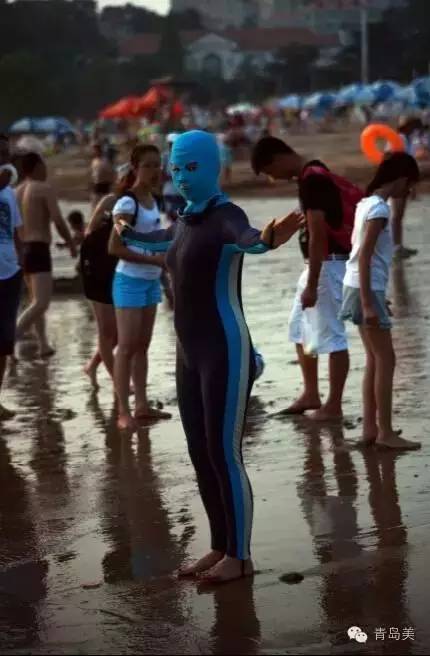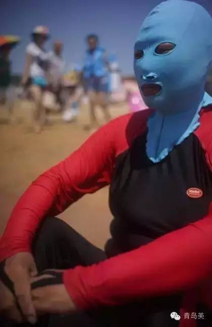 美白是亚洲女性追逐美丽的第一要务,洗海澡却让如何防晒变黑的美容大计变得任重道远。好在,青岛这座城市出产了众多美女的同时,也盛产机智的大妈。这些与诗人海子同龄的曾经的文艺女青年,在年轻的时候追逐“诗与远方”,现在他们依旧崇尚自由与浪漫的海上运动。于是,具有重要防晒功能的脸基尼,在热爱洗海澡的青岛大妈中诞生,成就了中国大妈对世界的另一大贡献。如果说,比基尼美女负责沙滩的风骚与风情,那么青岛脸基尼大妈则负责了一阵儿全球的时尚走势。